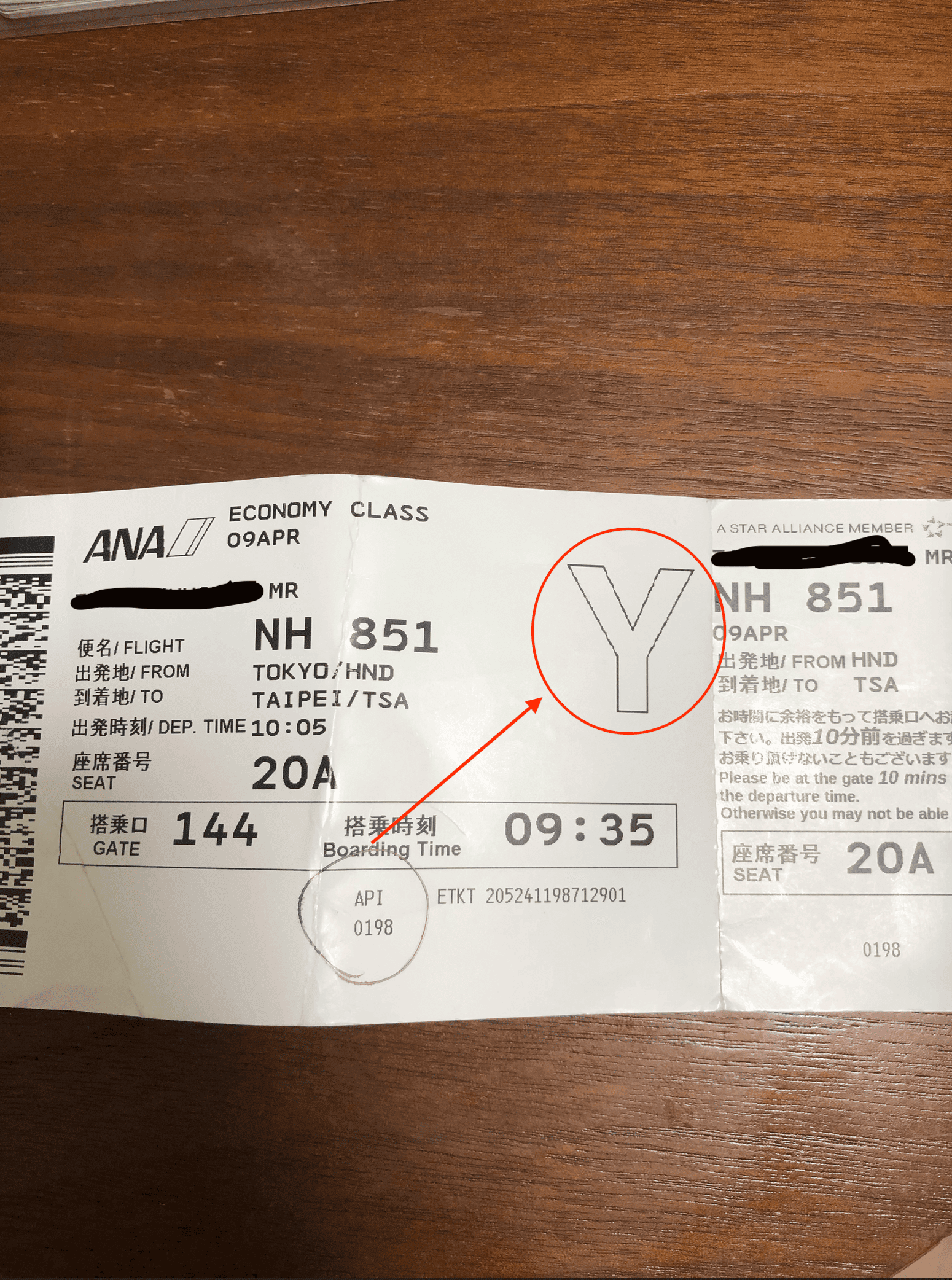 予約クラスとはこちらの画像でも分かるように、ボーディングパスの中心に書かれたアルファベットのことを指します。
