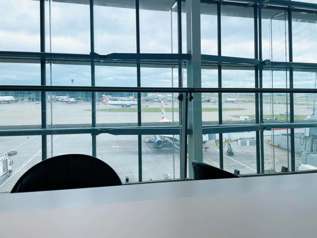 窓からは駐機しているブリティッシュエアウェイズの機材を眺められます。