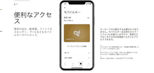 また、客室だけでなく、フィットネスルームやプールを利用する際もモバイルキーを使って入室が可能です。