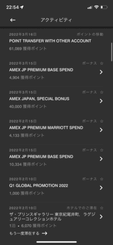 ちなみに、「AMEX JP PREMIUM BASE SPEND」という項目は、マリオットボンヴォイアメックスプレミアムカードの決済額によって付与されたポイントのことを指します。