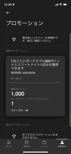 また、「プロモーション」という項目を選択すると、現在マリオットボンヴォイで開催中のプロモーション情報が表示されます。