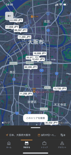 あまり知らない土地のホテルを予約する際は地図上でホテルの位置を確認しながらホテル選びをすると良いと思います。