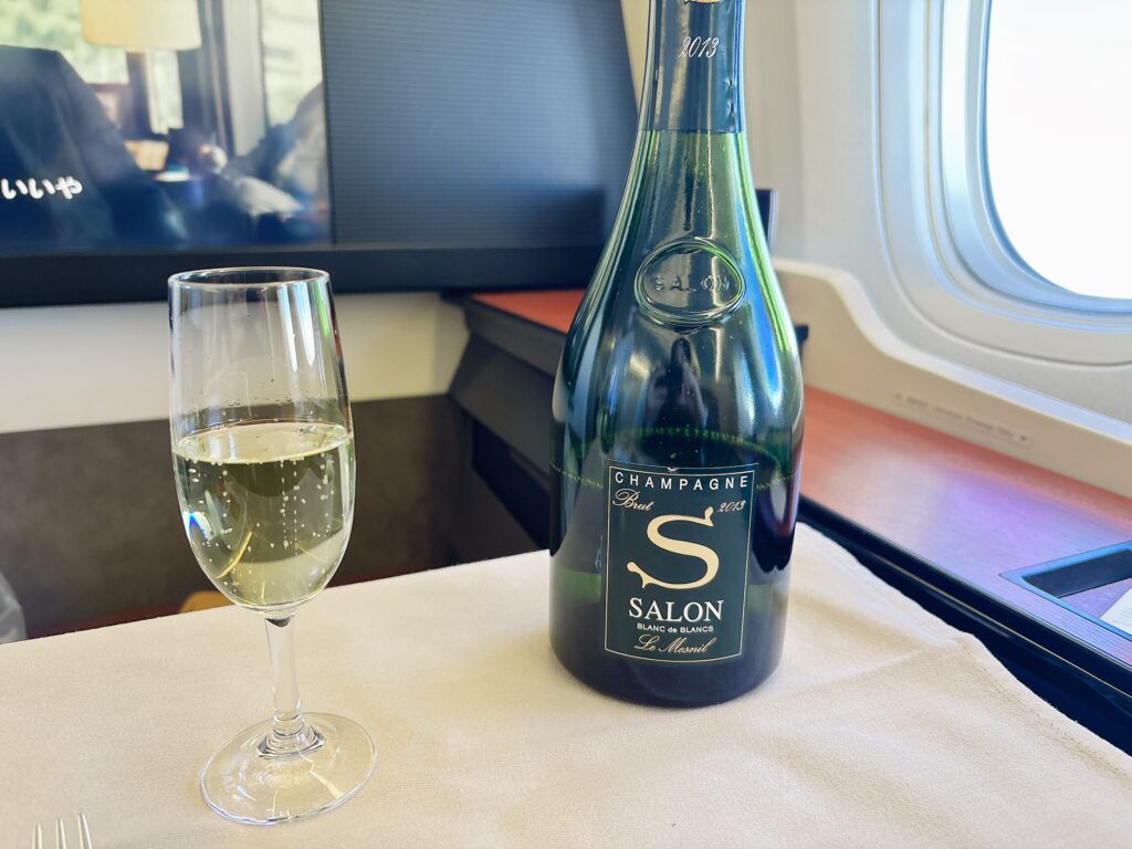 JALファーストクラスで提供された1本15万円ほどするシャンパーニュ サロン2013