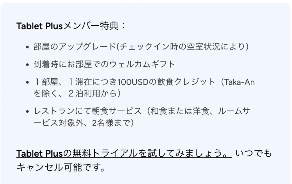 ・タブレットホテル会員権が無料(通常:年会費16,000円 税込)