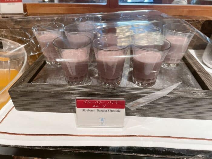 個人的に朝食ビュッフェの中で一番おいしいと思った、ブルーベリーバナナスムージー。
