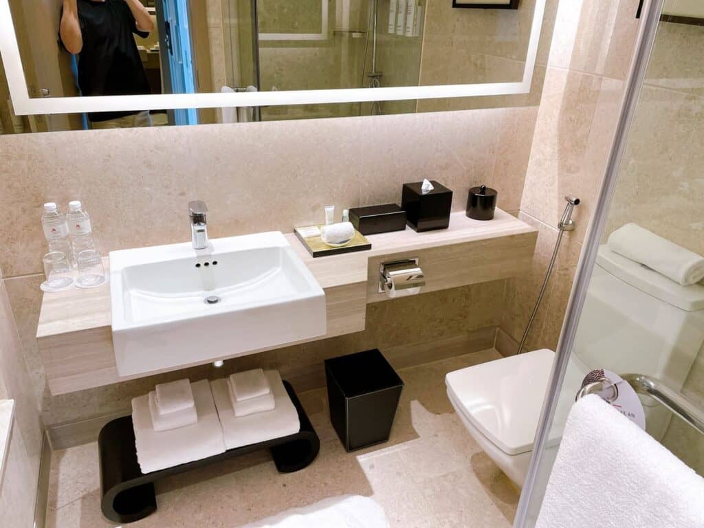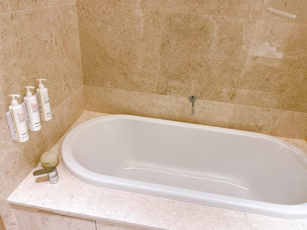 肩までゆっくりお湯に浸かるといったことは難しいですが、浴室付きの客室が少ないシンガポールでは非常にありがたいです。