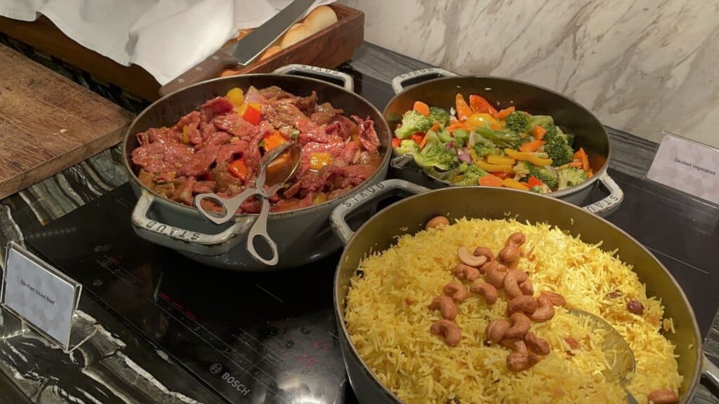 クラブラウンジでは、アフタヌーンティーの設定はないものの、カクテルタイムではディナー代わりにもなるフードやアルコールを楽しめるほか、ロビー階にあるレストランでビュッフェ形式の朝食を楽しめます。