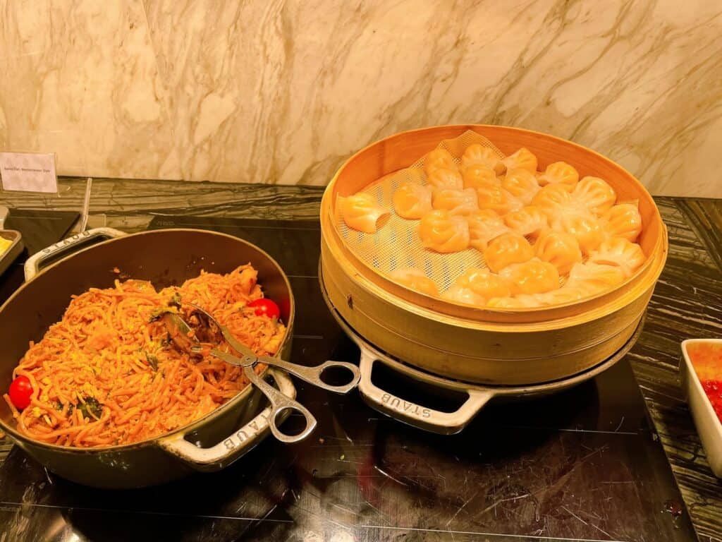 一口サイズのカナッペから中華系の海老蒸し餃子、ホッケンミーなどもあります。