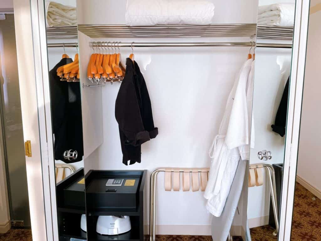 中には、バスローブやアイロンなどが収納されていました。