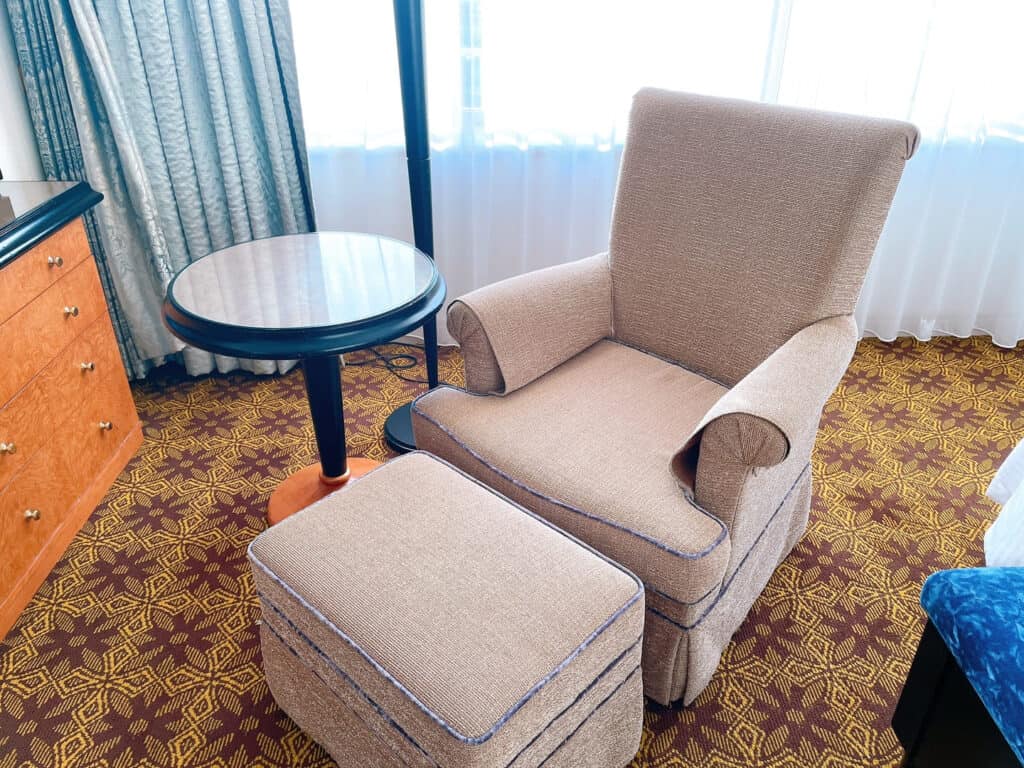 ソファは一人がけ用のオットマン付き。