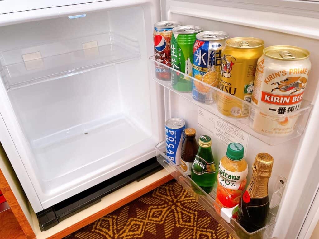 冷蔵庫の中には一部有料のドリンクが収納されています。