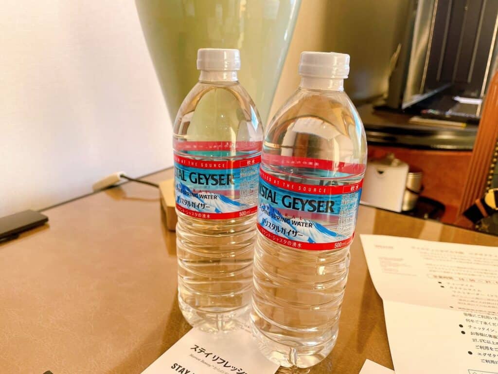 無料のお水はあらかじめ2本用意されています。