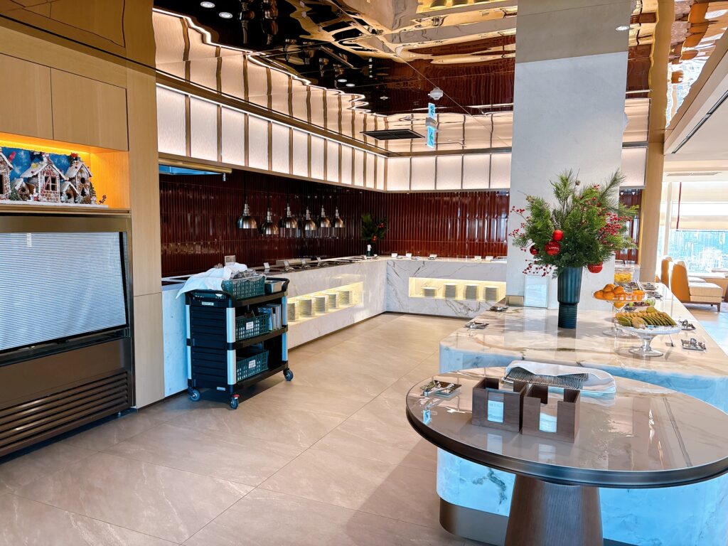 訪れたシーズンがクリスマスシーズンということもあり、ラウンジ内はクリスマスの装飾でホリデーシーズンを演出していました。