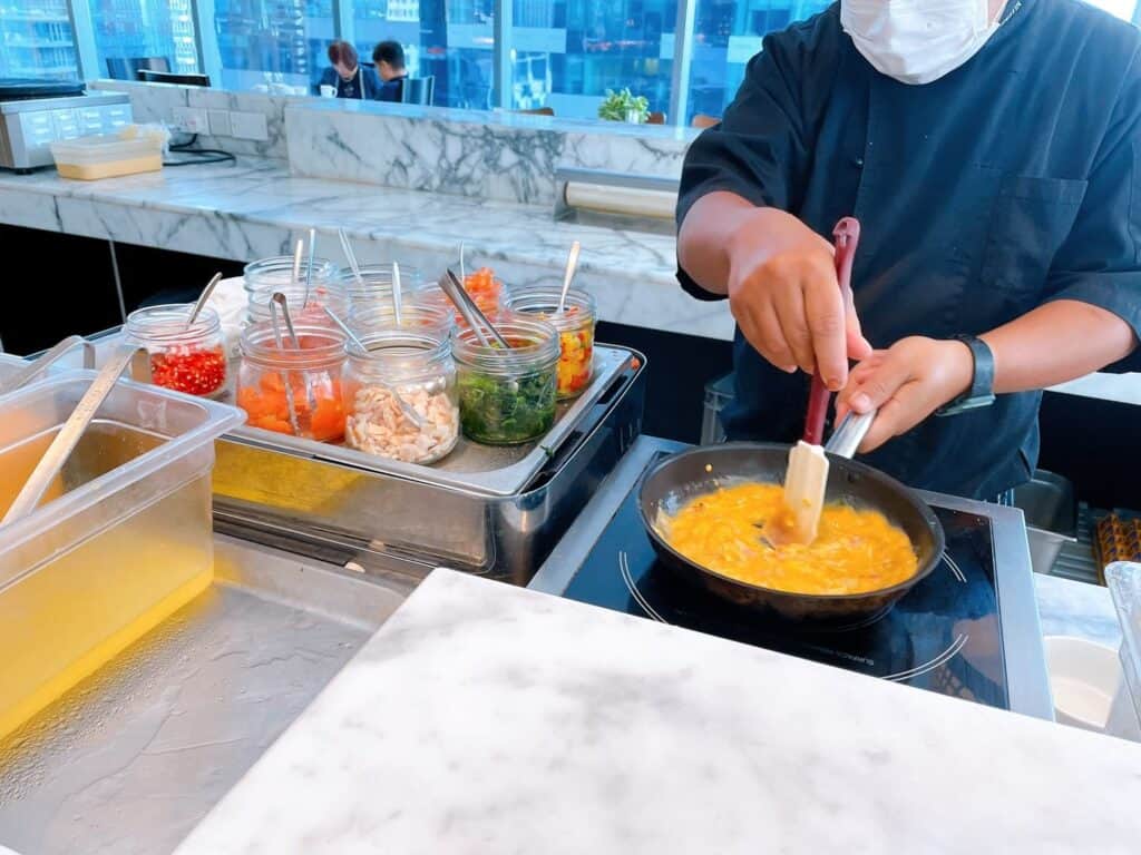 エッグステーションコーナーもあり、シェフにリクエストすれば、オムレツや目玉焼きを目の前で作ってくれます。