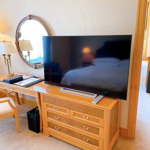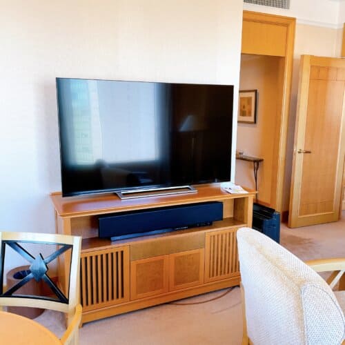 スイートルームのお部屋にも55型ほどのテレビが置かれています。