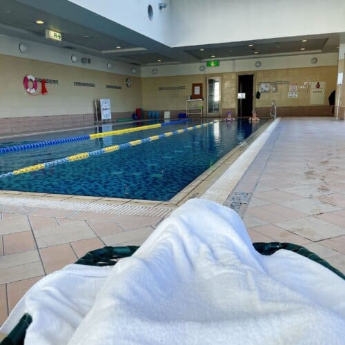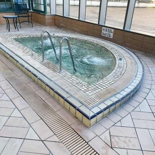 プールは20メートルほど。水深は1.1メートルです。こじんまりとした空間です。